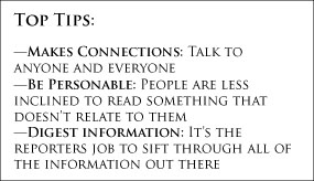 This includes remembering to not only be informative but entertaining. It’s important to get local concerns across, hit the streets and talk to average citizen and consider the audience. This is the most important aspect of this style of writing; any newspaper can cover a similar story, but it is the job of the beat reporter to illuminate the local side. They’re covering a specific region: How will the town be affected by this? Why should they care? How do they receive the issue?