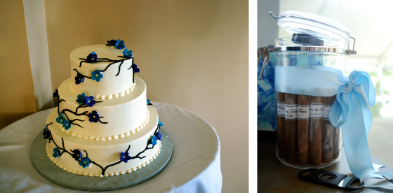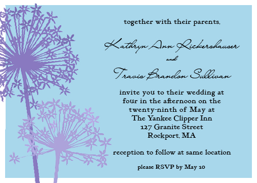 The very top image is the official wedding invitation, which has edges that bleed but were cropped so there was a crisp white border surrounding the main color block, but with just a bit of the flowers spilling over. Directly above is the RSVP card, which has many of the same consistent elements. Since Katie and Travis have a good sense of humor, I was able to make the RSVP card a bit fun and not as stiff as traditional wedding ceremonies may call for.