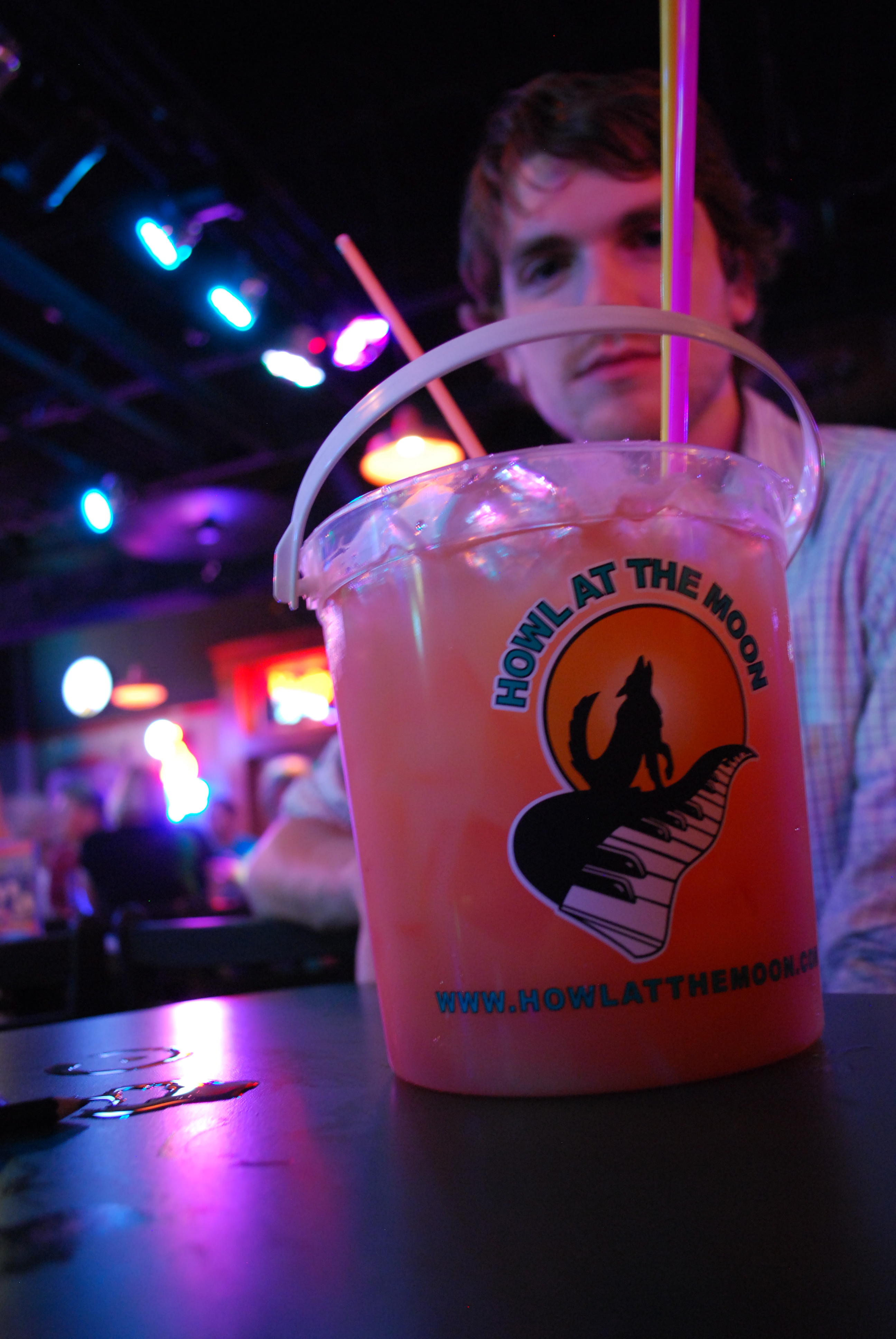 We had an amazing lunch at a tapas restaurant downtown and a quick walk around the park, then loaded back up into the car to spend the night in Kansas City, Missouri. It was a Friday so after we got settled in the hotel we made a dash for the Power & Light District, where we stopped by Howl at the Moon for some dueling pianos … and a bucket of liquor: