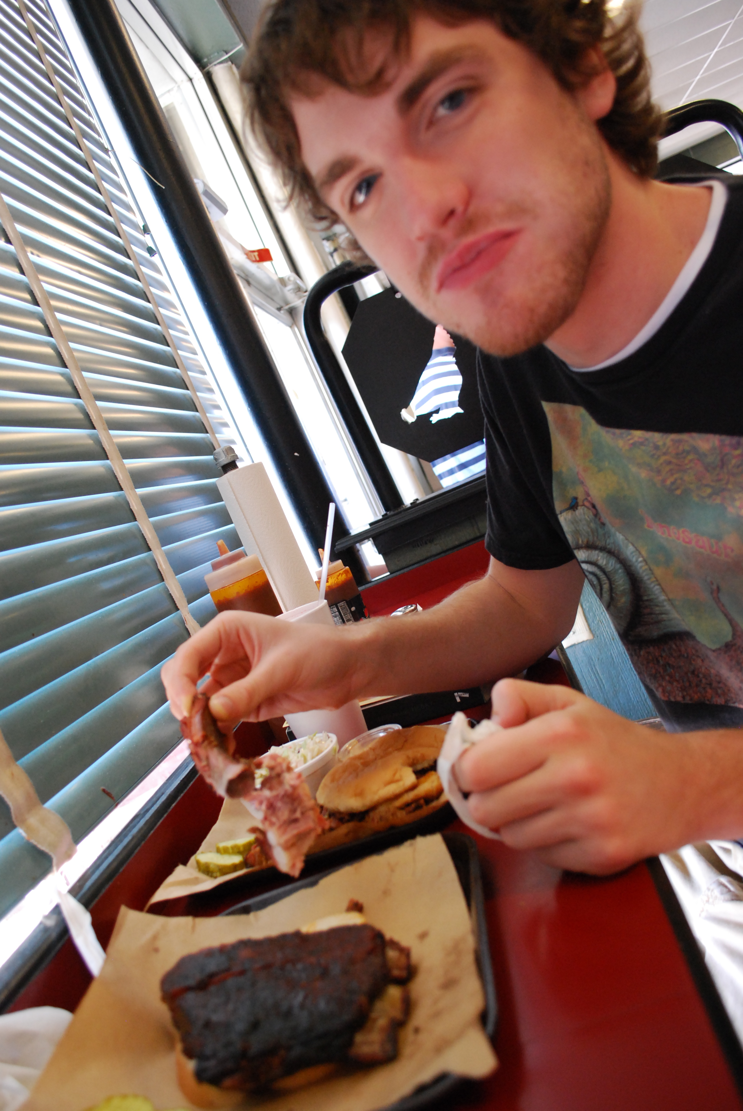 The next day, before we geared up to drive across the rest of the Midwest, we did a quick search on Yelp for barbeque restaurants. And what we found was nothing short of astounding — Oklahoma Joe’s BBQ. Not only does Oklahoma Joe’s BBQ function out of a gas station (which also is fully functioning), but it also has a line that typically snakes around the entire restaurant and almost out the door and it also tops Anthony Bourdain’s 13 Places to Eat Before You Die list. I ordered a pulled pork sandwich and onion rings and Dan had to try the burnt ends (what they’re famous for), coleslaw and a half rack of ribs: