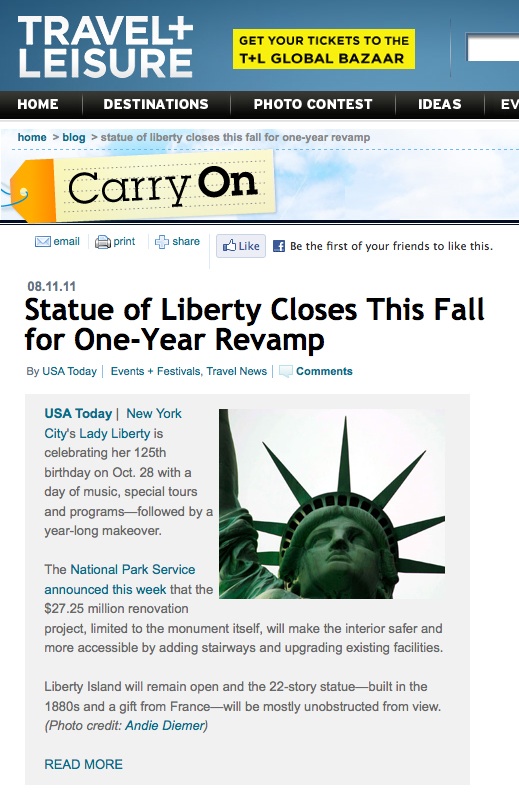 three: Last July I bought tickets to go all the way up to the crown of the Statue of Liberty, which had a two month waiting period. Even though it is a drag to basically go through airport-style security to even get on the boat to Ellis or Liberty Island, once you are on the boat you are free to shoot anything. I snapped some really picturesque shots during the ferry ride over and had a truly unique perspective once I was taking photos through the glass panels of Lady Liberty’s crown (which only 30 people per hour are allowed to experience). When it was announced that the Statue of Liberty would be closing for renovation this fall, our editors wanted to get a story live quickly. The photographs I took on that long-anticipated day trip sure came in handy. Check it out: