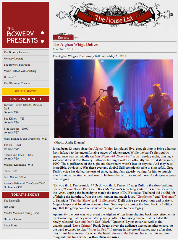 After a 13 year break, the Afghan Whigs are back! Dan jumped at the chance to finally see one of his favorite bands perform live and brought me along to shoot it for Bowery Presents. The entire show was back lit, which made my job pretty tough, but it was great to finally see these legends perform live. See some additional photos below that didn’t make it onto The House List: