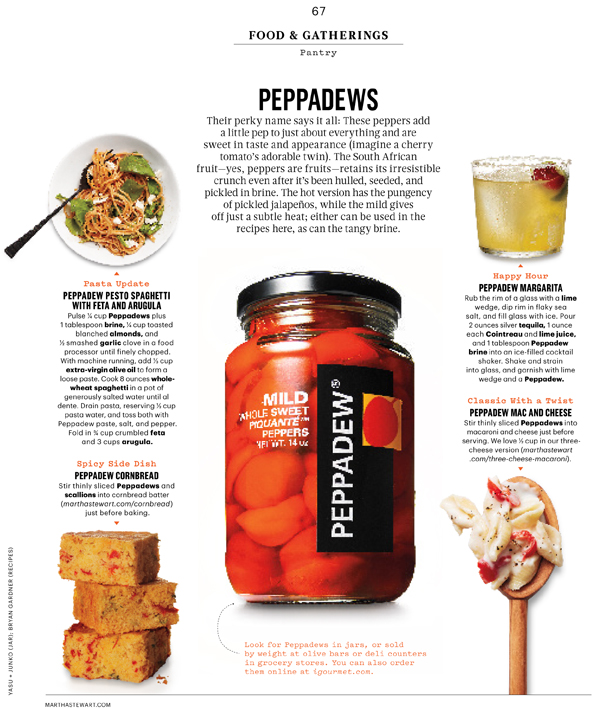 PEPPADEWS March 2014 Martha Stewart Living product photographer: Yasu + Junko food photographer: Bryan Gardner assigned + produced: Andie Diemer Like Loading...