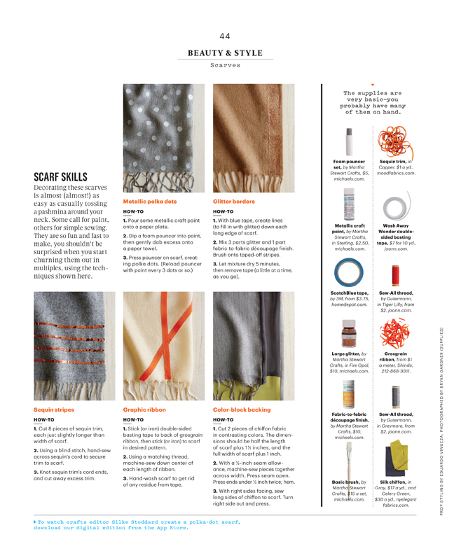 DIY SCARF EMBELLISHMENTS November 2013 Martha Stewart Living photographer: Burcu Avsar assigned + produced: Andie Diemer Like Loading...