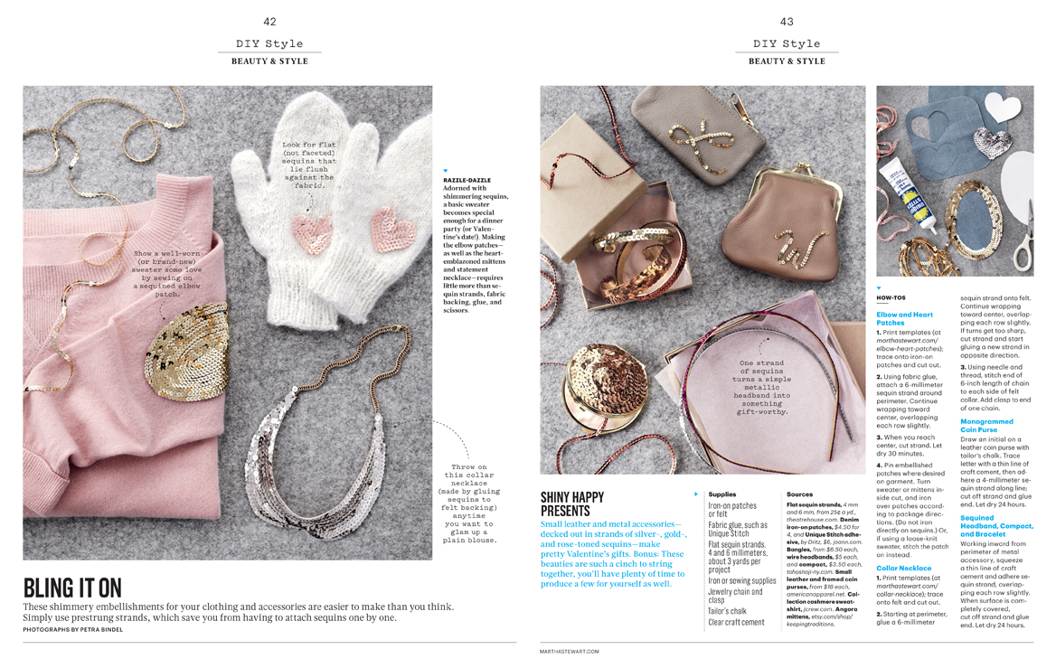 DIY SEQUINS February 2015 Martha Stewart Living photographer: Petra Bindel prop styling: Erin Fuery assigned + produced: Andie Diemer Like Loading...