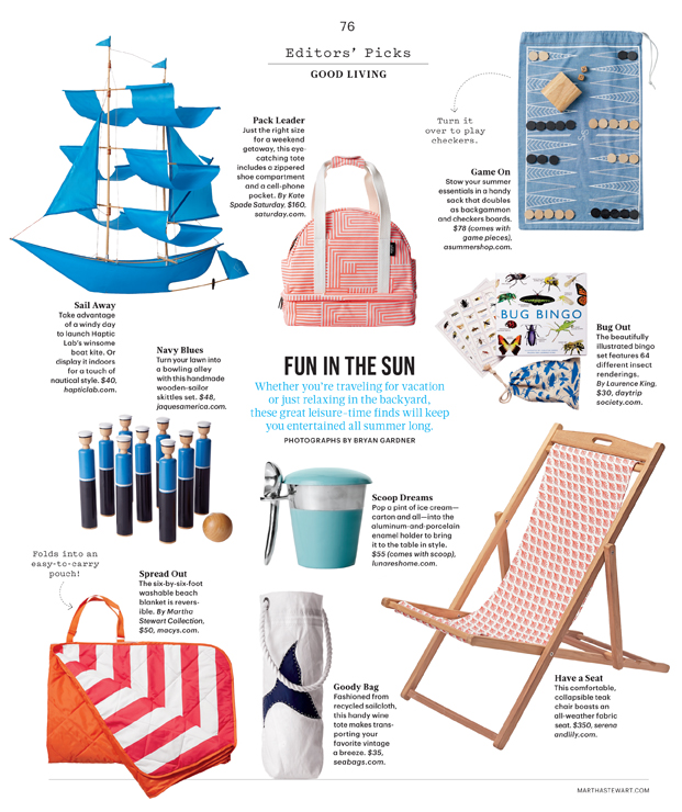 IN THE SUN July/August 2014 Martha Stewart Living photographer: Bryan Gardner assigned + produced + edited: Andie Diemer Like Loading...