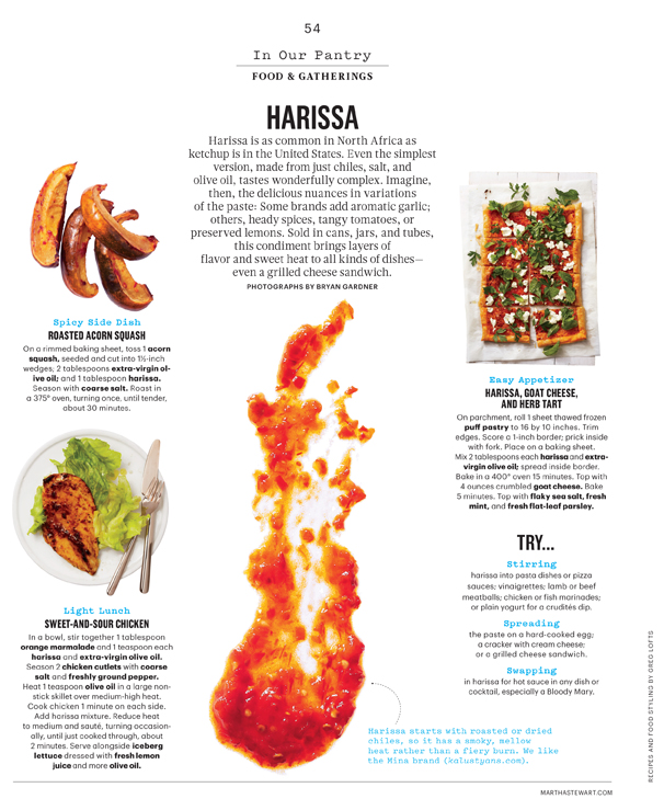HARISSA November 2014 Martha Stewart Living photographer: Bryan Gardner food styling: Greg Lofts assigned + produced: Andie Diemer Like Loading...