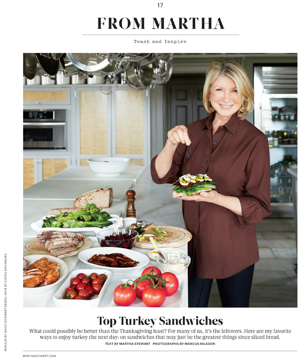 MARTHA’S TURKEY SANDWICHES November 2014 Martha Stewart Living photographer: Marcus Nilsson hair: Katsu Nakamura makeup: Daisy Schwartzberg food styling: Sarah Carey assigned + produced on location in Katonah, NY: Andie Diemer Like Loading...