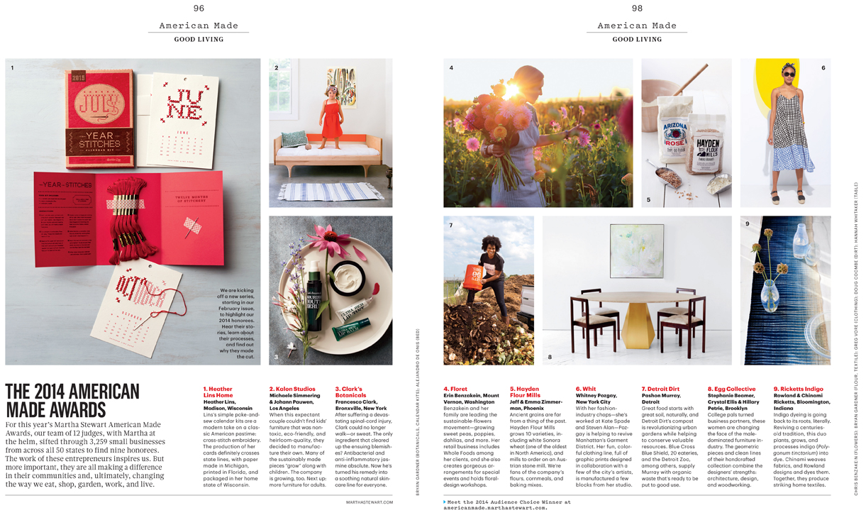 2014 AMERICAN MADE AWARD WINNERS REVEAL December/January 2014/2015 Martha Stewart Living photographers: Chris Benzakein, Doug Coombe, Alejandro De Onus, Bryan Gardner, Greg Vore + Hannah Whitaker photo researched + edited + assigned + produced: Andie Diemer Like Loading...