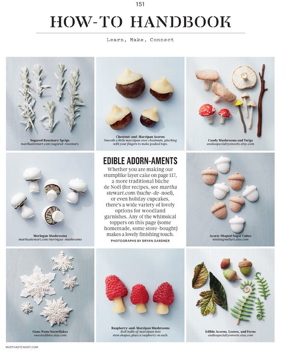 EDIBLE GARNISHES HOW-TO December/January 2014/2015 Martha Stewart Living photographer: Bryan Gardner food styling: Jennifer Aaronson art concept + assigned + produced: Andie Diemer Like Loading...