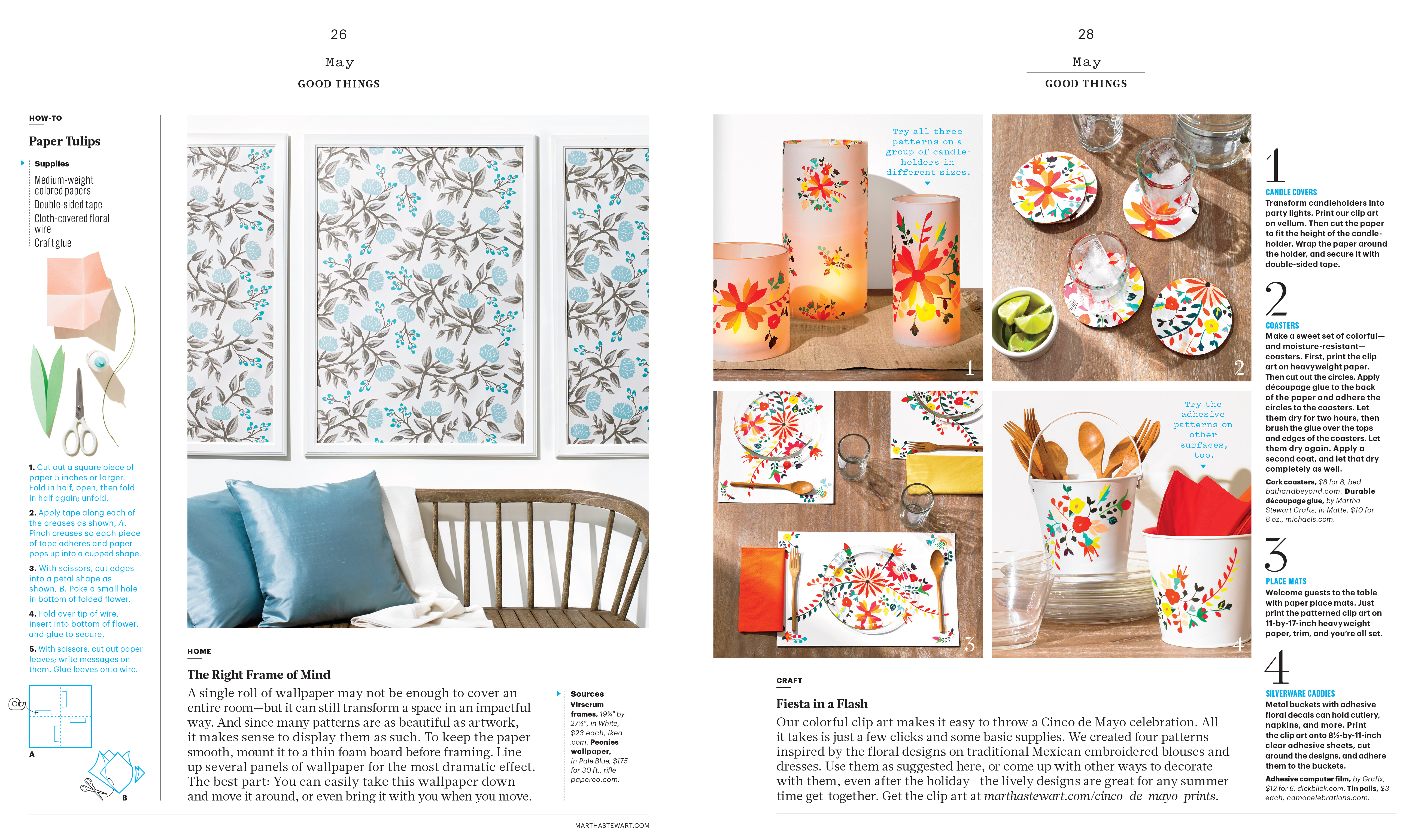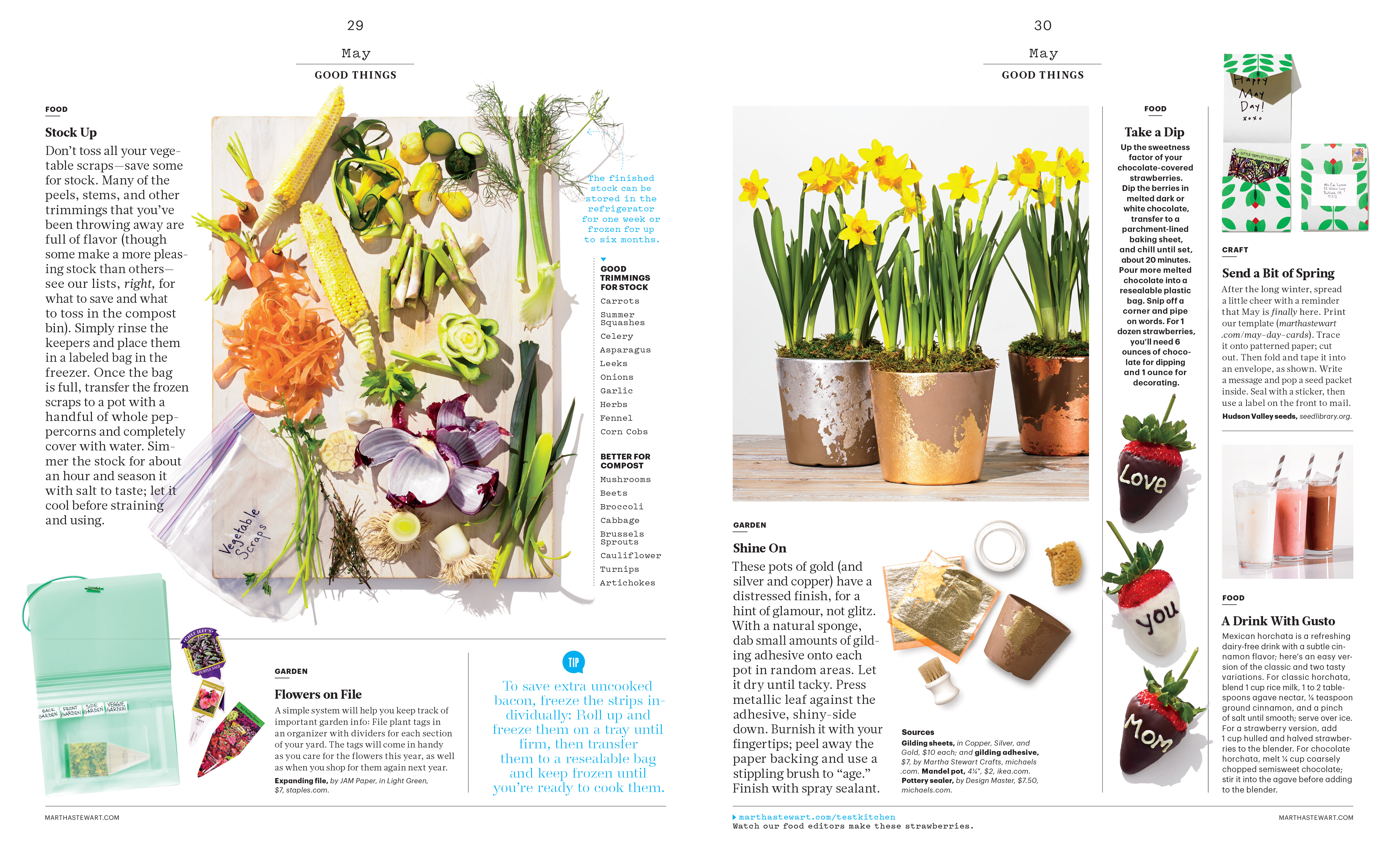 MAY 2015 GOOD THINGS May 2015 Martha Stewart Living photographer: Aaron Dyer prop styling: Helen Quinn food styling: Greg Lofts craft styling: Erin Furey hair + makeup: Daisy Schwartzberg assigned + model casted + art direction + produced: Andie Diemer Like Loading...