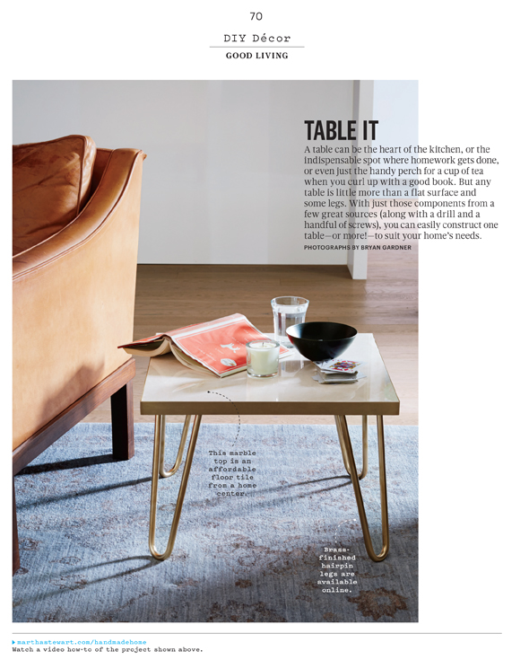 DIY TABLES September 2014 Martha Stewart Living photographer: Bryan Gardner prop stylist: Tanya Graff illustrator: Brown Bird Design location scouted + assigned + produced on location in DUMBO, Brooklyn: Andie Diemer Like Loading...