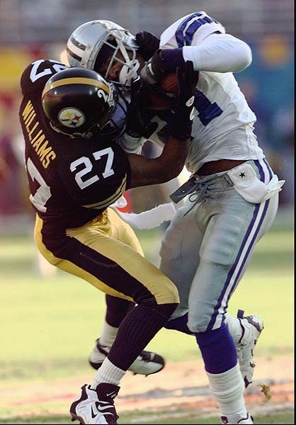 AP. Denion Sanders’ first-half catch over Willie Williams went for 47 yards. 1996. Digital photograph. Associated Press.